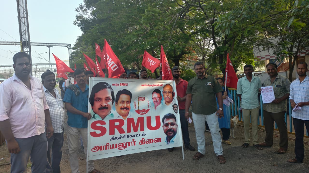 அரியலூர் ரயில் நிலையத்தில் உள்ள சீனியர் செக்ஷன் என்ஜினீயர் அலுவலகம் (நிரந்தர வழி) முன்பு, பல்வேறு கோரிக்கைகளை வலியுறுத்தி தென்னக ரயில்வே மஸ்தூர் யூனியன் (எஸ்.ஆர்.எம்.யூ.) சார்பில் கோரிக்கை முழக்க ஆர்ப்பாட்டம் நடைபெற்றது. ஆர்ப்பாட்டத்திற்கு எஸ்.ஆர்.எம்.யூ. அரியலூர் கிளை செயலாளர் த.…